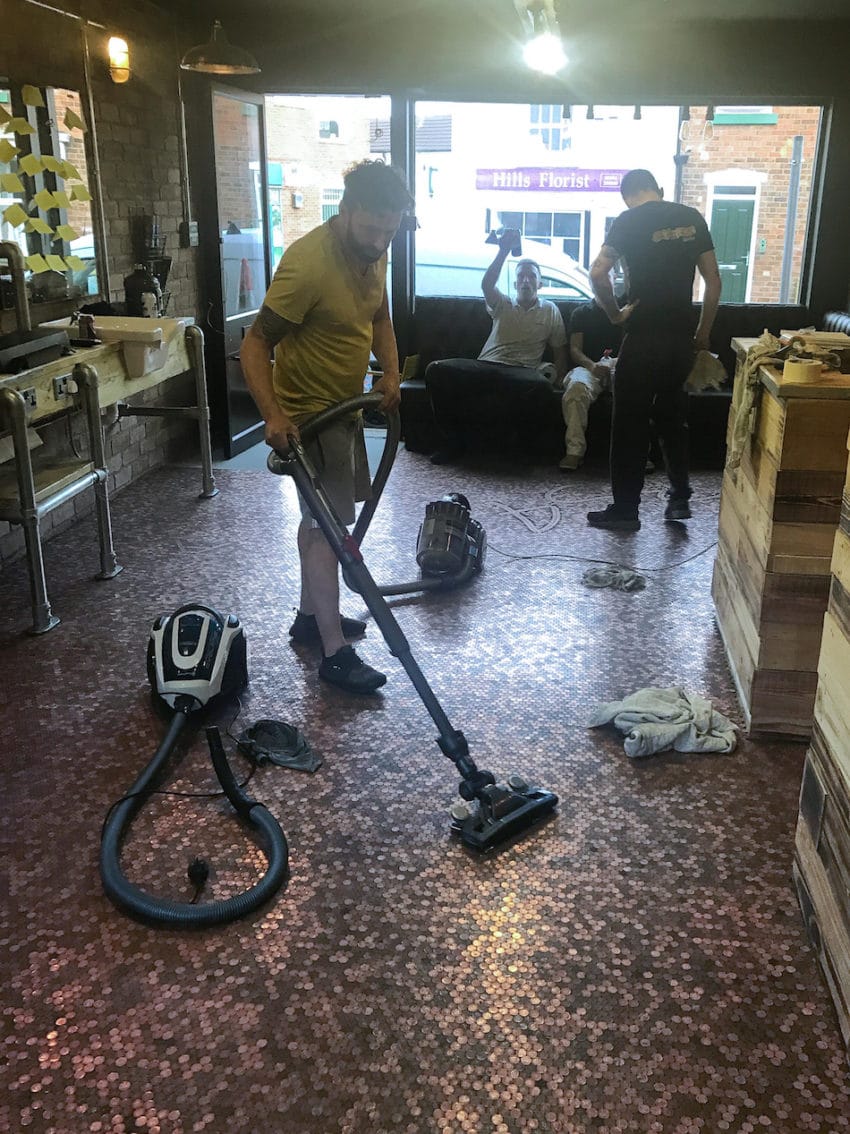 Barber Receives $1,165 Estimate For New Floor, So He Covers It In 70,000 Pennies Instead! 0 7603 Facebook Twitter Pinterest WhatsApp BackNext6. 8The floor cleans up easily at the end of the day. BackNext