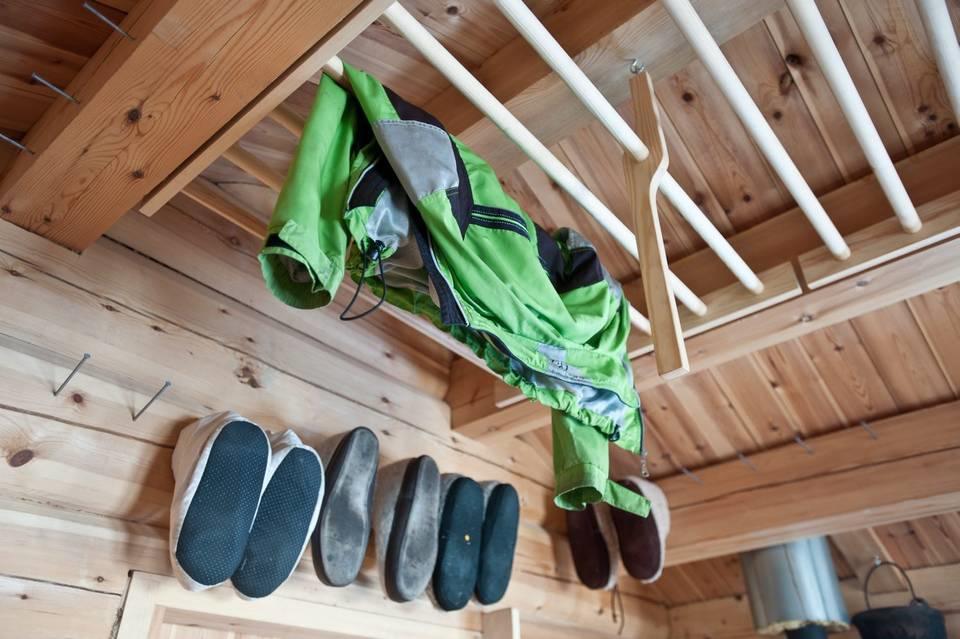 1The ceiling is fitted with a practical and space-saving clothes dryer. © Photo: Pasi Aalto