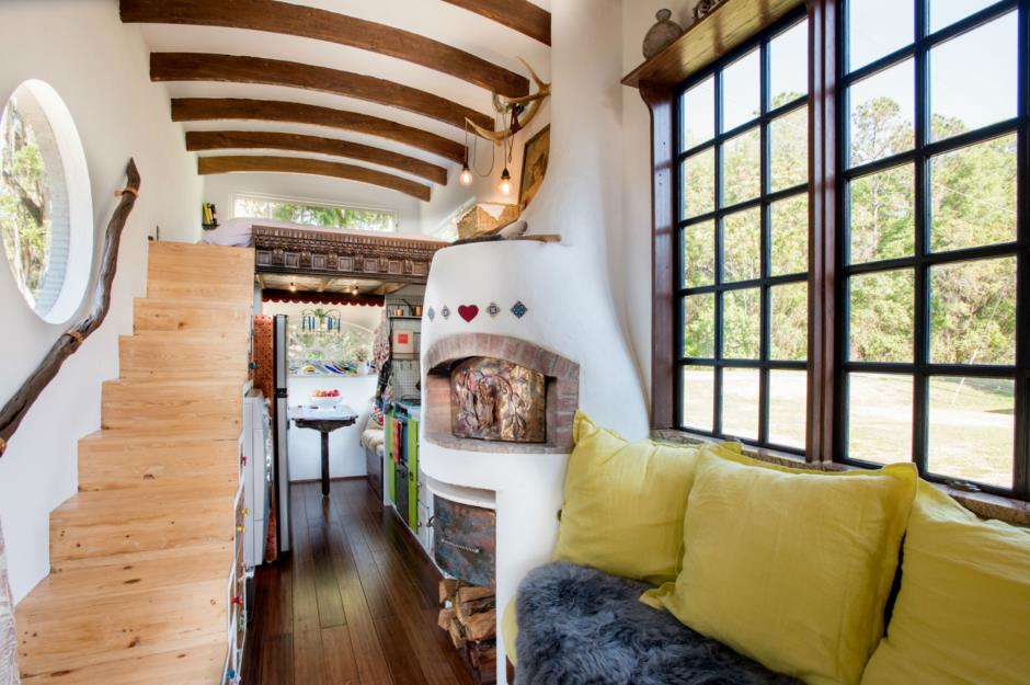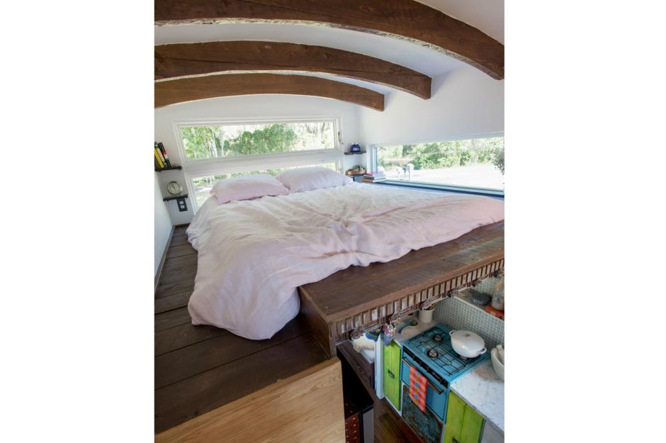 One of the standout features of The Gypsy Mermaid is its small-scale wood-fired pizza oven, built into the design using concrete and bricks. Such heavy materials added considerably to the weight of the wagon, but as the couple don’t plan to regularly move their tiny home it was a sacrifice they were willing to make for fresh home-cooked pizza.