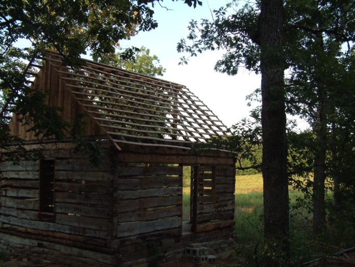 “This cabin was a real find,” Aiken told SF Globe. “It was two stories, with a very large ‘pen’ of about 21-22 feet square. The material was massive white oak beams, hand hewn and squared with half dovetail notches. Most logs were in excellent condition.”
