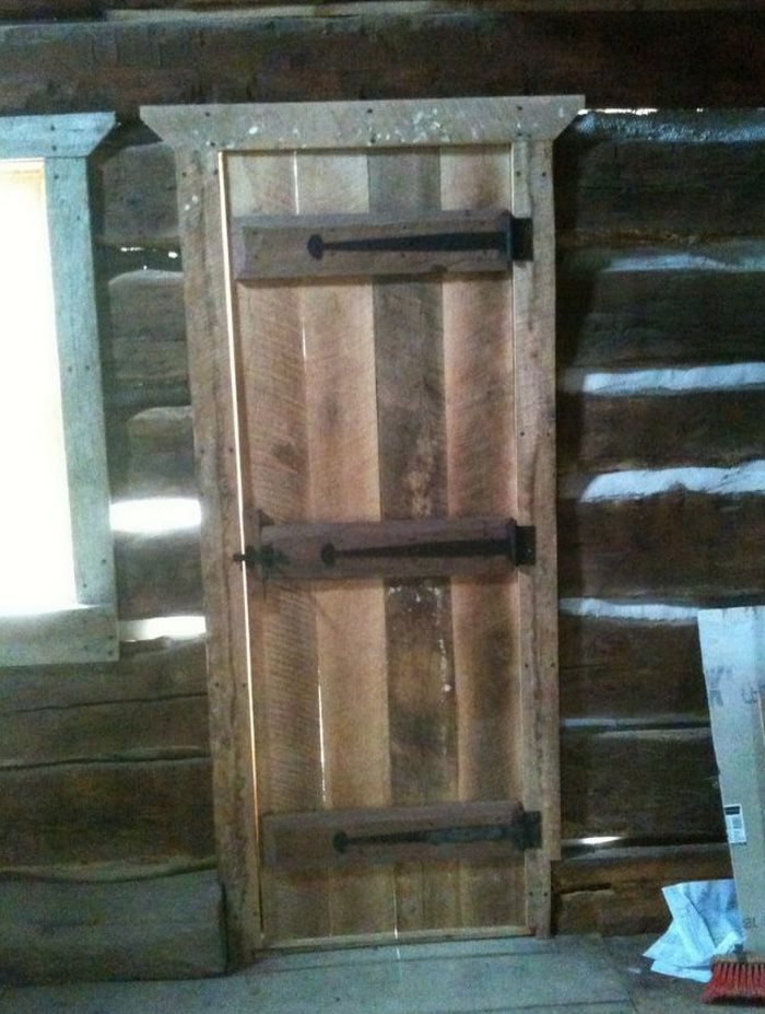 Although the cabin is basic, Aiken made his own mark by including lots of incredible detail. A fallen oak trunk was used to craft a set of stairs into the loft, while all the windows and doors were constructed by a craftsman and shipped in. Even the metal hardware, in fact, was made from hand-wrought iron.