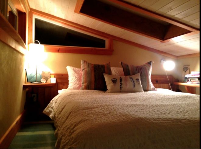 Den 27-årige kvinde byggede et lille træhus – men interiøret er større, end du tror! 0 24577 Facebook Twitter Pinterest WhatsApp 29 Soveværelset blev bygget på mezzanin-gulvet i den 4,5 meter høje stue, ovenlysvinduerne tillader Rebecca at se på stjernene om natten.BackNext